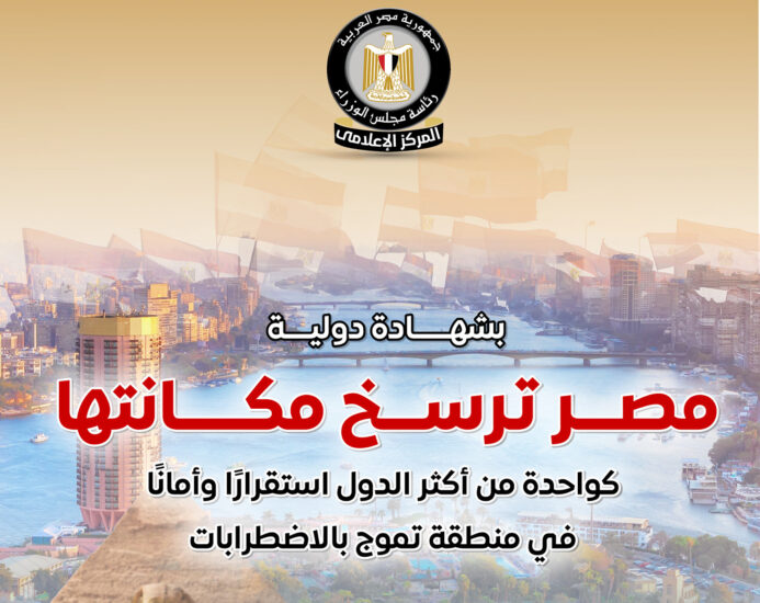 نشر المركز الإعلامي لمجلس الوزراء عددًا من الإنفوجرافات عبر منصاته على مواقع التواصل الاجتماعي، سلط من خلالها الضوء على الشهادة الدولية التي تؤكد مكانة مصر كواحدة من أكثر الدول استقرارًا وأمانًا في منطقة تموج بالاضطرابات.